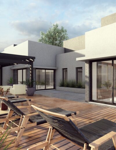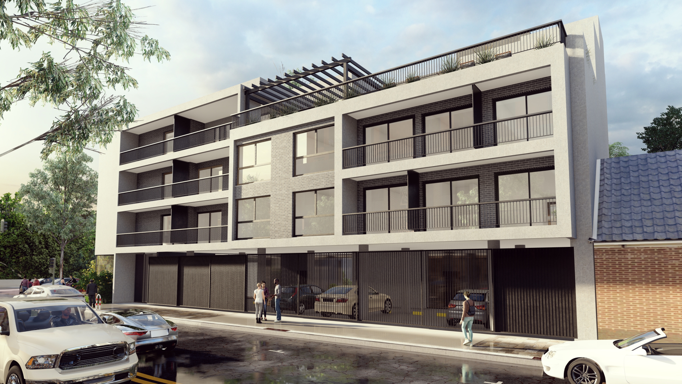 CORREA 424 es un proyecto compuesto por una planta baja con recepción y estacionamiento, y tres plantas de viviendas de dos y tres ambientes.
